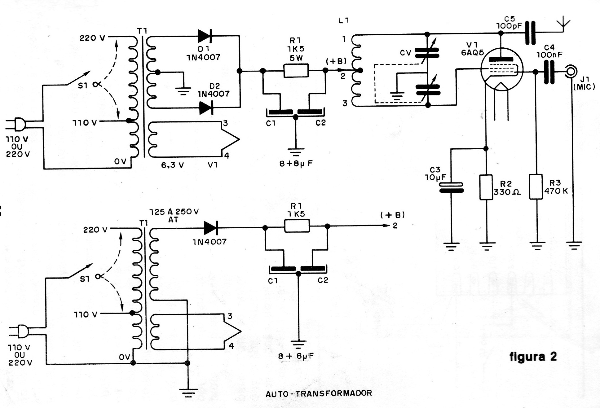O circuito do transmissor é dado em duas versões básicas, que utilizam transformador comum ou autotransformador (figura 2).